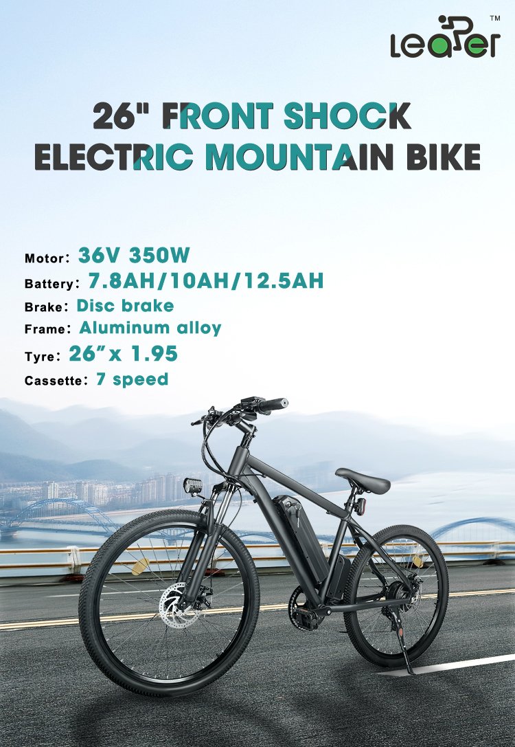 26″ Electric Mountain Bike – Front Suspension | 36V 350W | 30–40 KM Range | 7-Speed