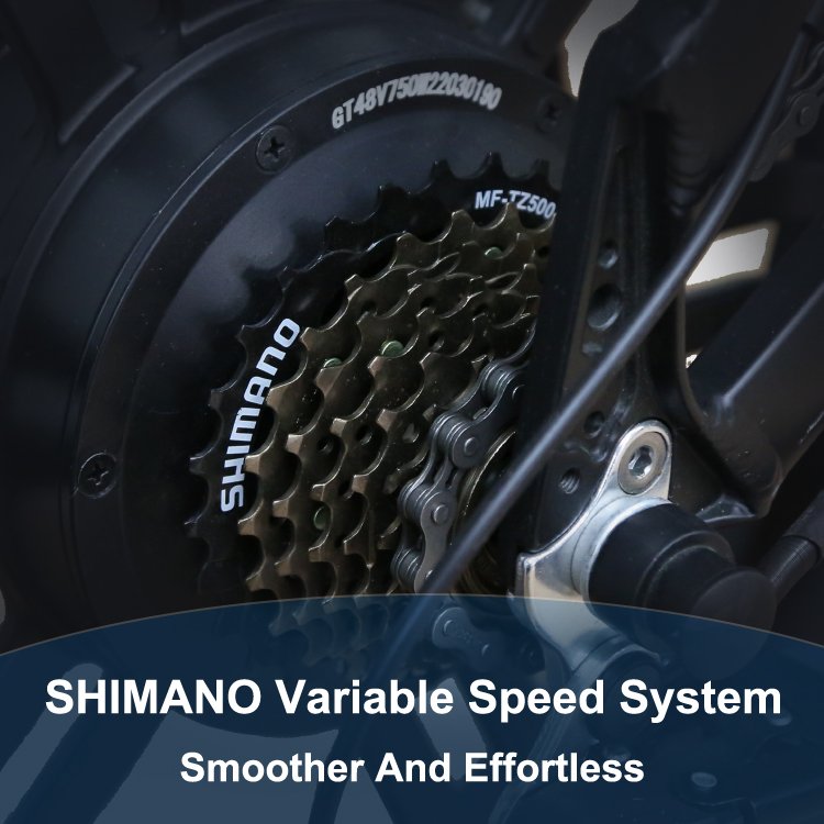 750 W Fat-Tire Moto-Style E-Bike | 20″ × 4.0″ Tires | 60–70 KM Range | 7-Speed